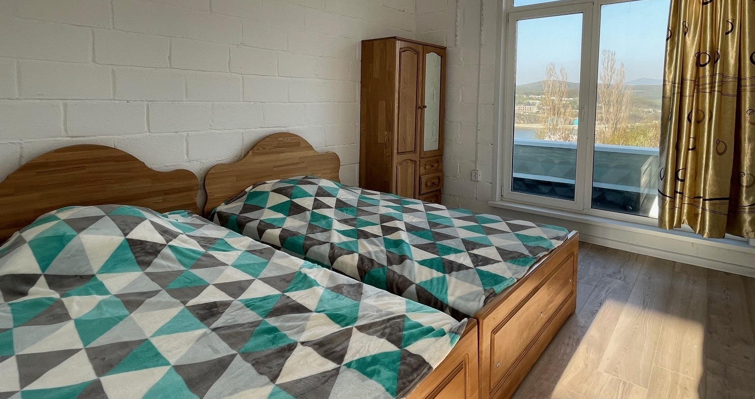 4-х комнатные апартаменты (77 м2) с двумя санузлами, на 2 этаже с панорамным видом на море, выходом на террасу, для комфортного размещения до 6-9 человек