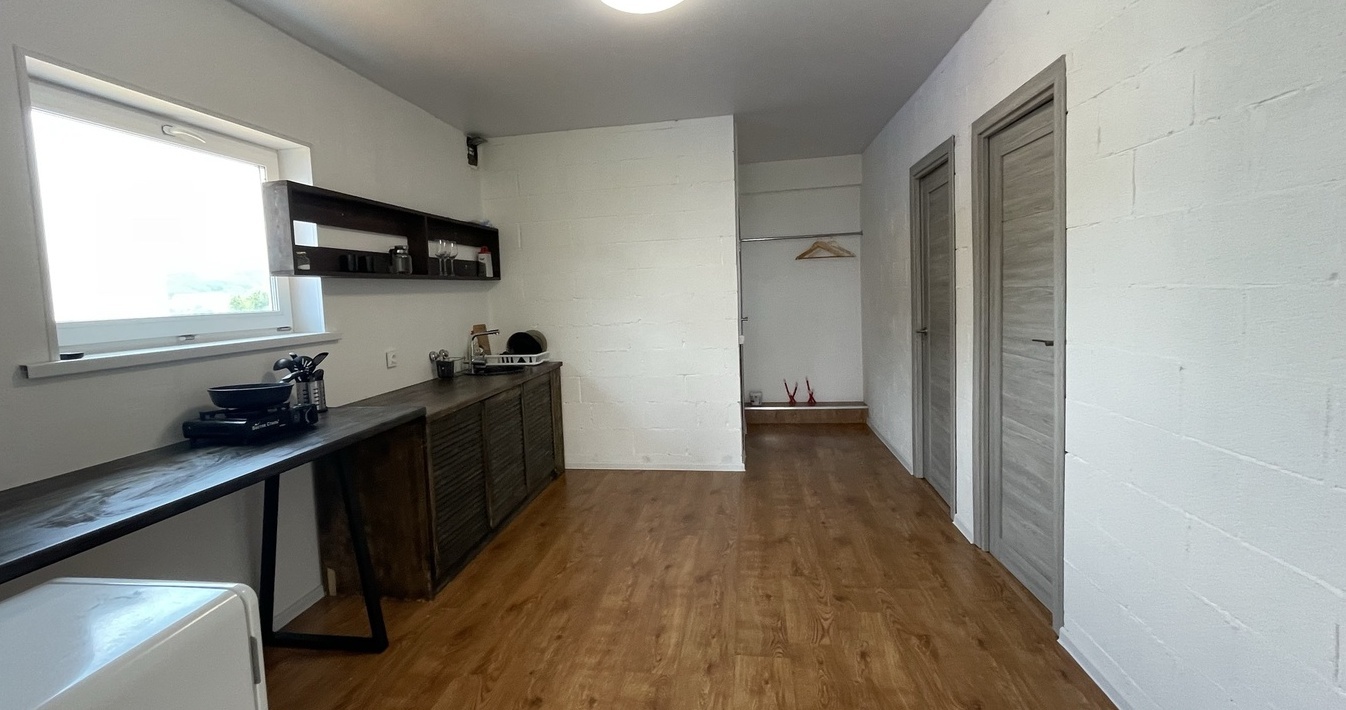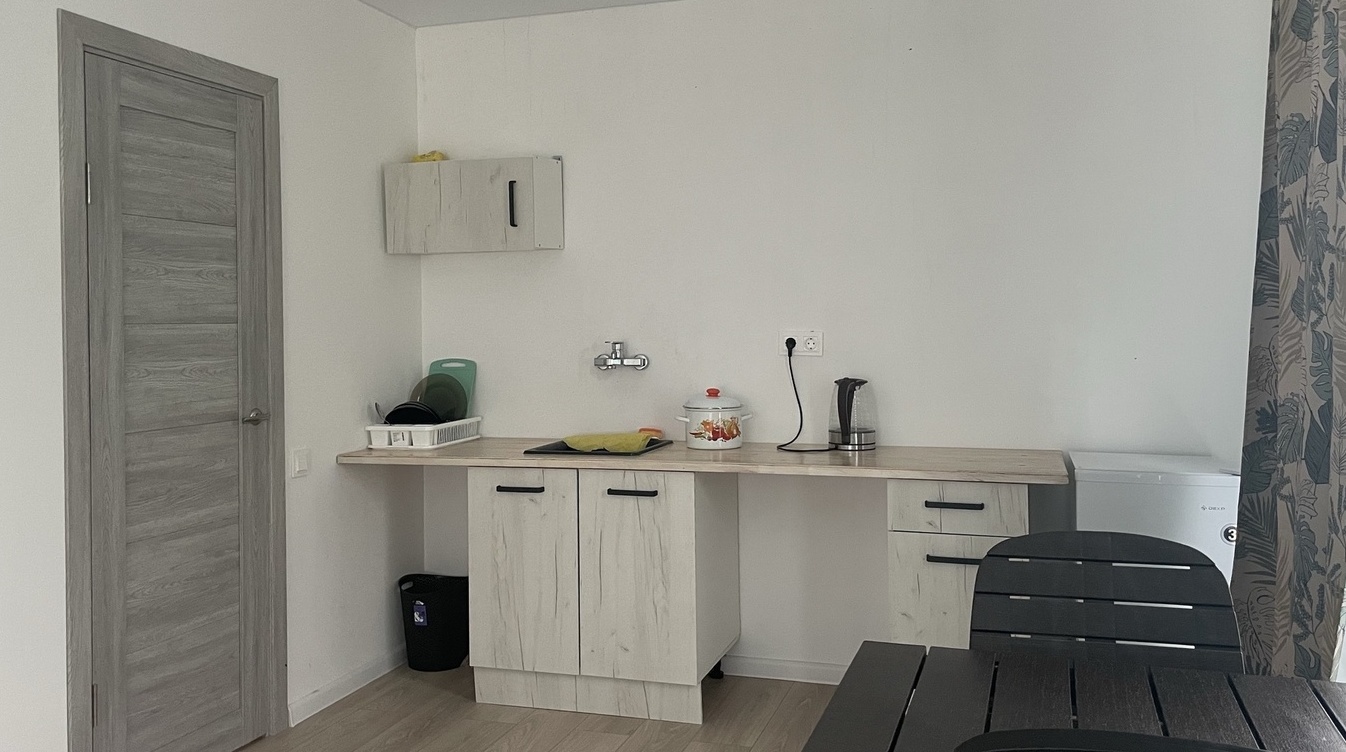 Апартаменты-студия (28 м2) на 1 этаже для комфортного размещения 2-3 человек.